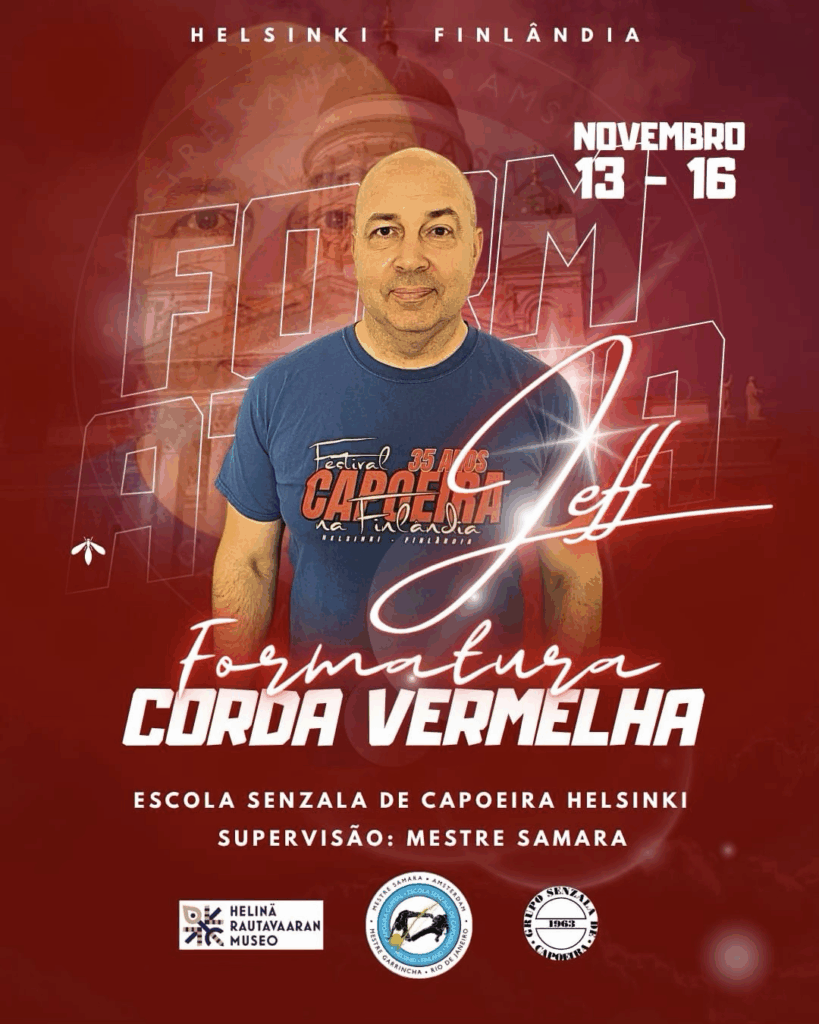 O Festival Formatura 2025 é um evento organizado pela Escola Senzala de Capoeira Helsinki, onde o primeiro finlandês se formará na faixa vermelha do Grupo Senzala, o nível mais alto. A Escola Senzala e sua associação Capoeira Capital são o grupo de capoeira mais antigo da Finlândia, que há 36 anos divulga a cultura afro-brasileira no país. Mestre Samara tem sido o professor do grupo durante todo esse tempo. Esta roda de capoeira aberta abre o evento com a proposta de reunir os entusiastas da velha guarda, a geração mais jovem e todos os grupos de capoeira da região metropolitana de Helsinki.